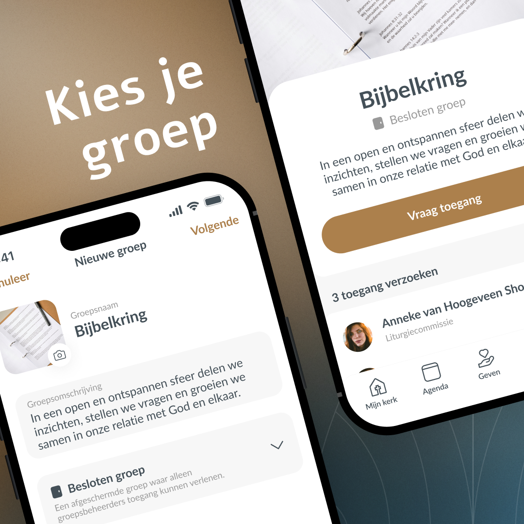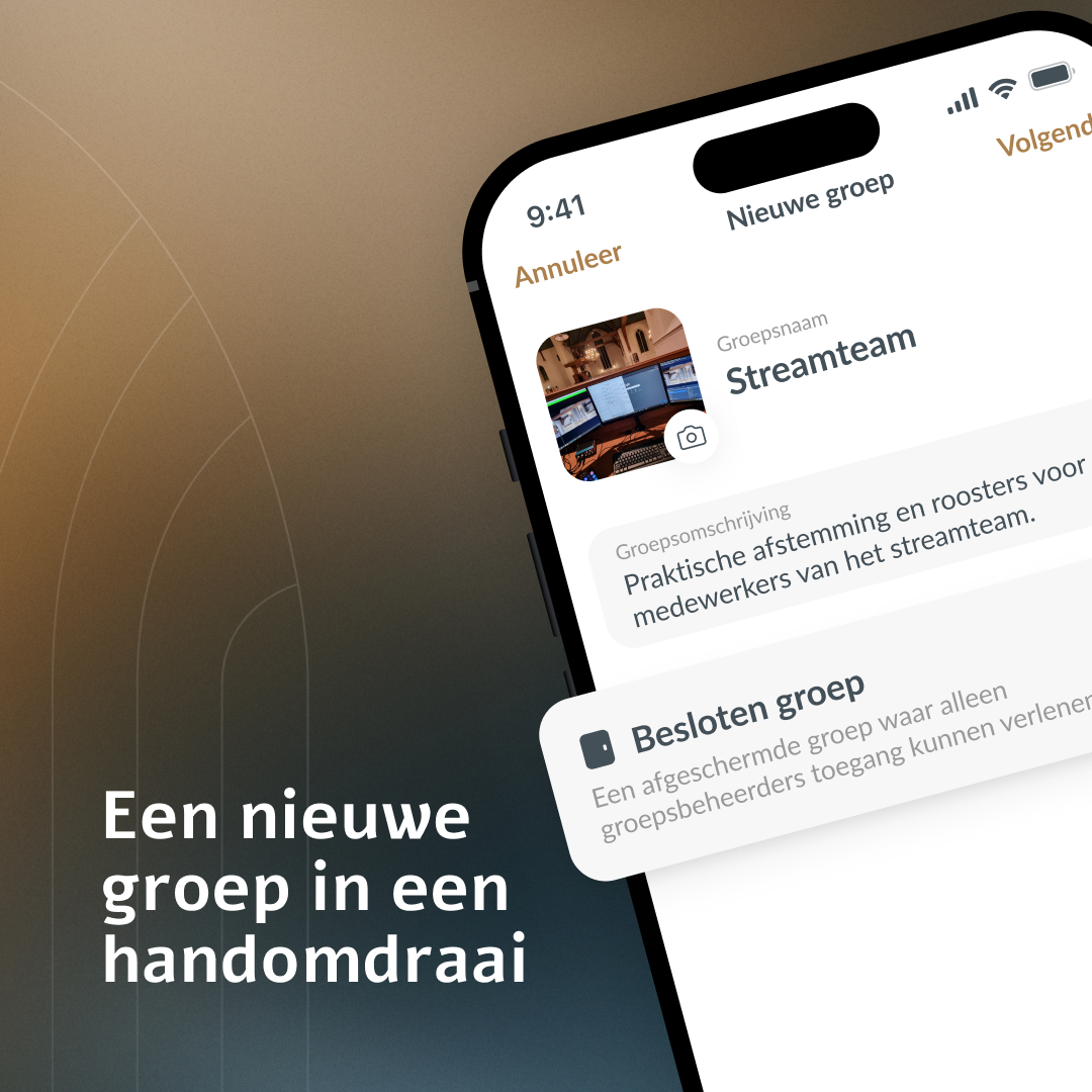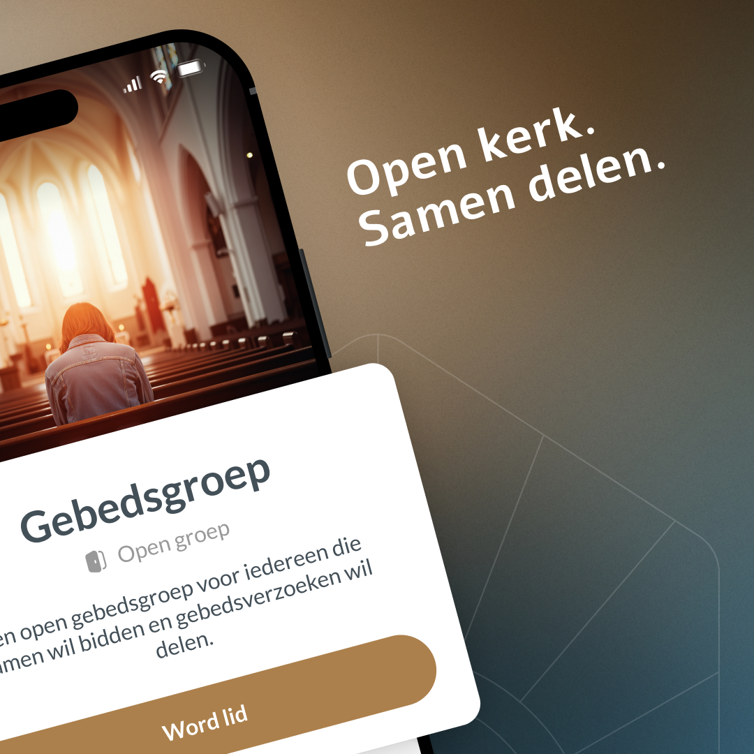 De kerkbrede groep is de hoofdgroep van de app. Zie het als de basis van de app. Je kunt deze groep als gebruiker als enige groep niet verlaten.
