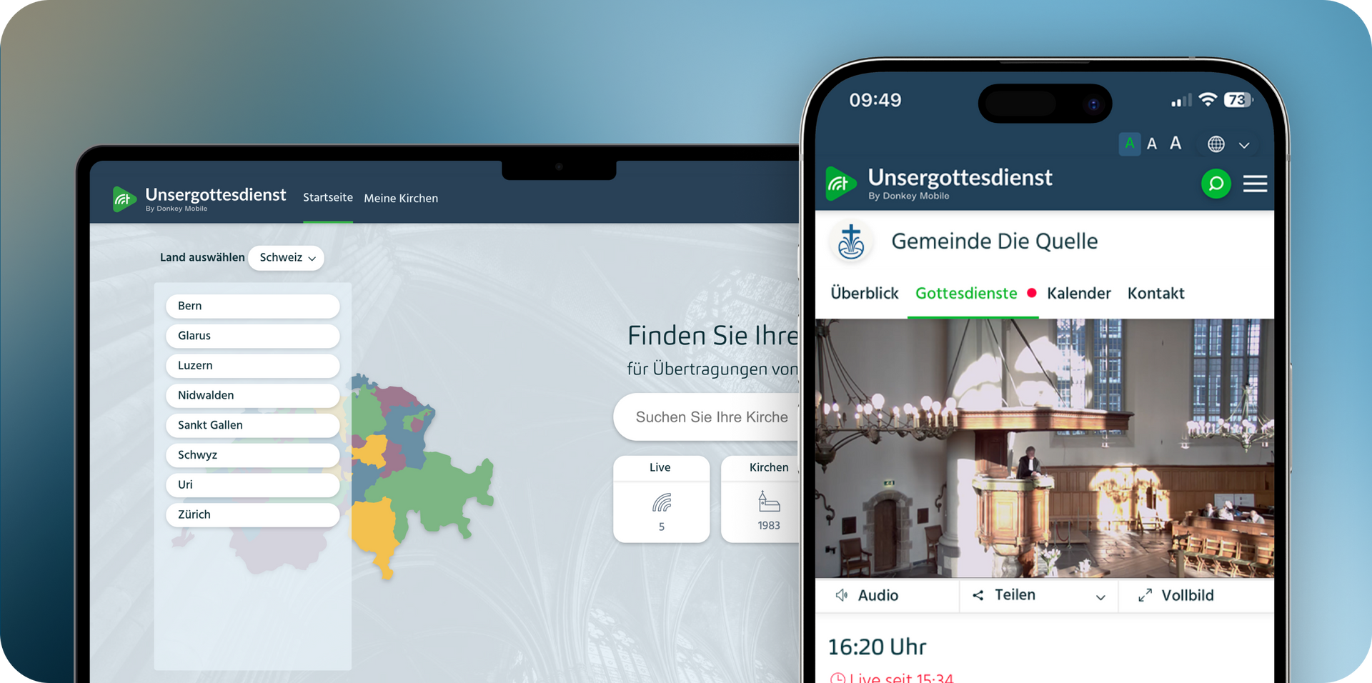 Das perfekte zusammenspiel aus eigener Kirchen App und einer Streamingplattform