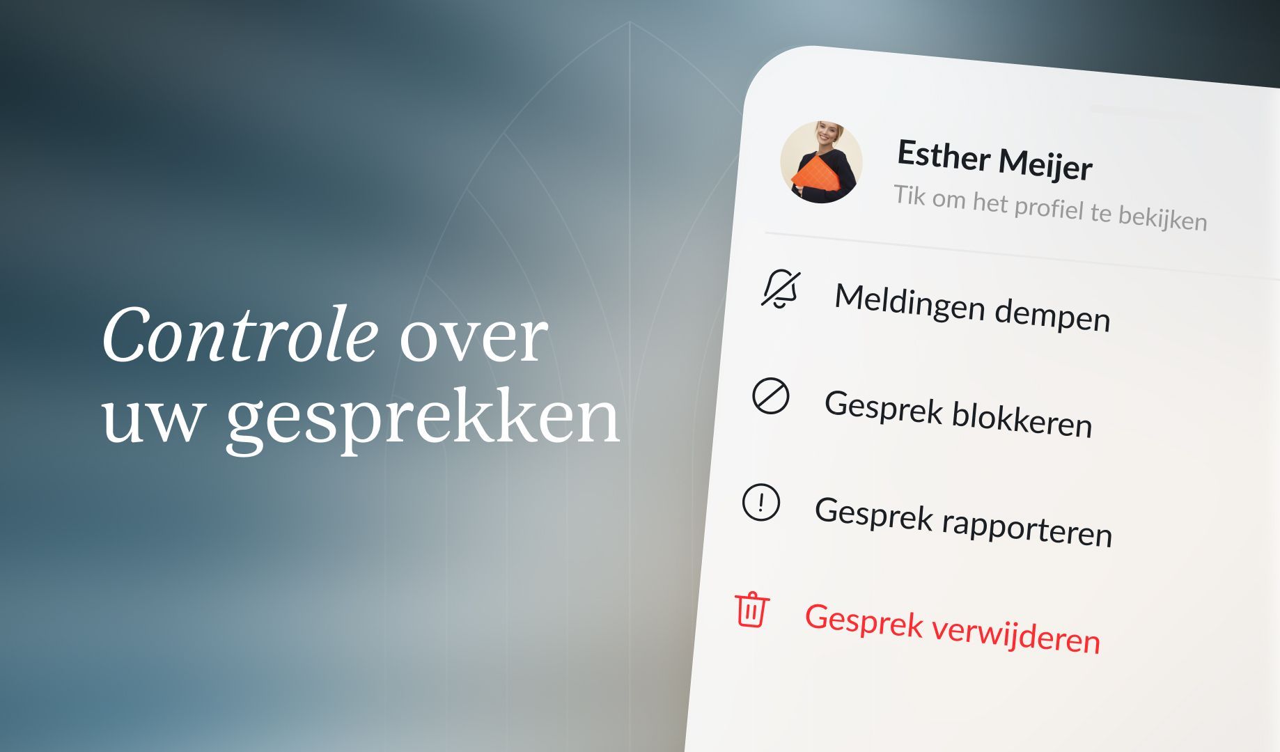Gemeenteleden hoeven geen nieuwe app te downloaden. Ze gebruiken de app al en daar vinden ze nu ook de chatfunctie. Gesprekken die er toe doen, in veilige context. De kerkapp is een besloten en veilige omgeving, de chatfunctionaliteit evengoed.