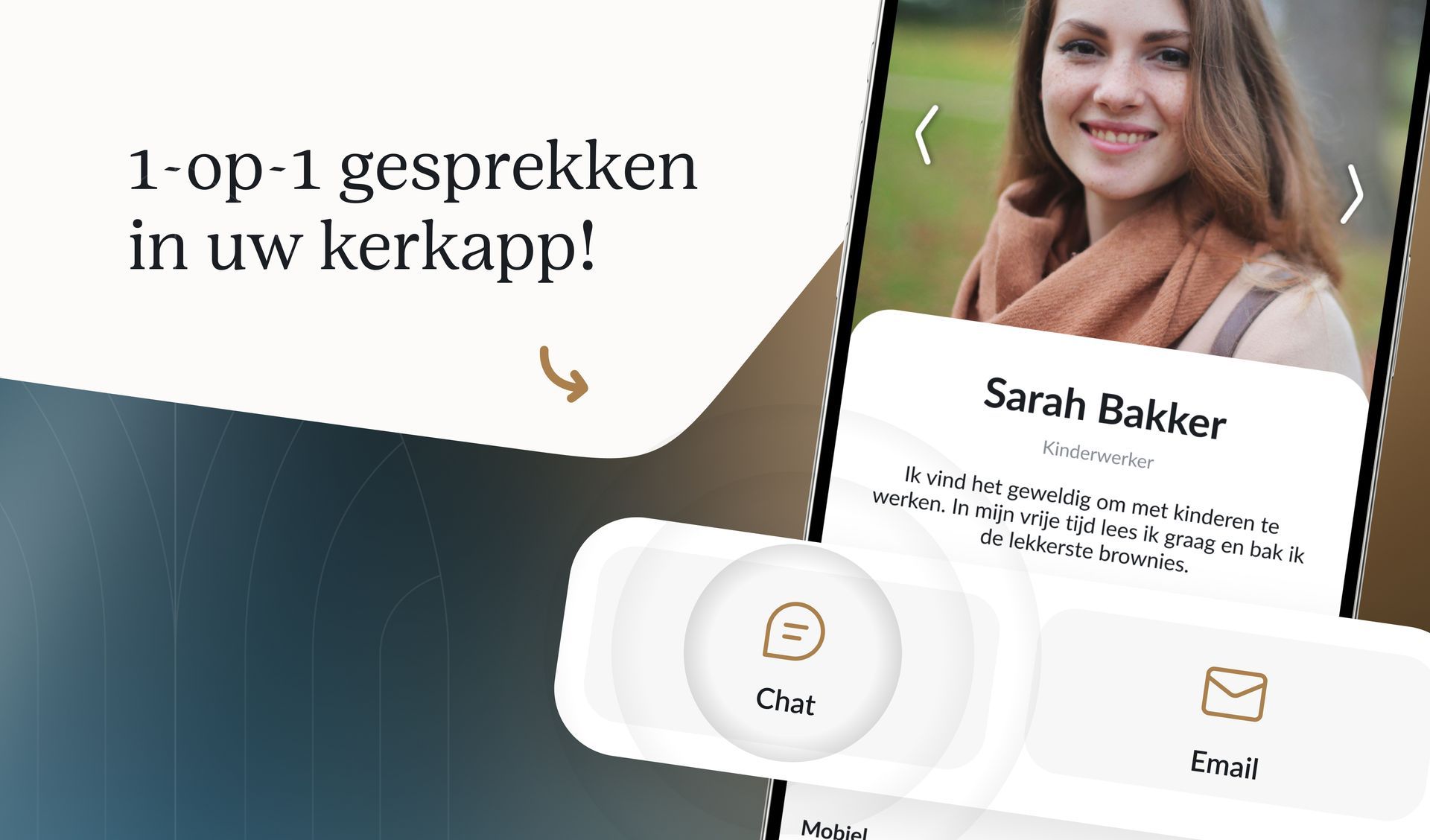 - Privacy zonder drempels. Gemeenteleden kunnen nu contact met elkaar opnemen zonder telefoonnummers of e-mailadressen te hoeven delen. Voorheen was een gemeentelid dat geen 06-nummer had toegevoegd simpelweg niet bereikbaar via Whatsapp. Met chat is iedereen bereikbaar binnen de gemeente.